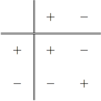 en fortegnslinje for uttrykket, ved å følge ’multiplikasjonstabellen’ over.