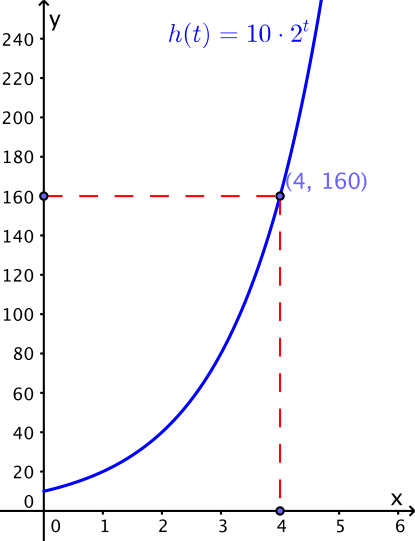 Vi antar at mengden bakterier fordobler seg hver time og at veksten er uhemmet. La oss si det er ti tusen bakterier i utgangspunktet. Da får vi en modell for antall bakterier som følger: