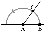 - Punktet der halvsirkelen krysser linjen til høyre for A, kaller du B.