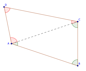 Vanlige skrivesaker, passer, linjal med centimetermål og vinkelmåler.
