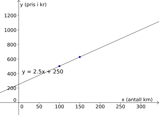 Svar: Hvis er bilens verdi i kroner etter år, så er (i følge tabellens modell). Dette funksjonsuttrykket er på formen , så modellen er lineær.