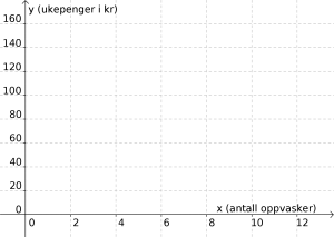 Denne oppgaven er om Et koordinatsystem i planet består av to akser, x-aksen og y-aksen. Aksene står vinkelrett på hverandre. x-aksen er horisontal og y-aksen er vertikal. Punktet der aksene krysser kalles for origo. Koordinatsystemet gir oss muligheten til å presentere punkter i planet i form av to tallverdier (x,y). Origo har koordinatene (0,0). En graf er en tegning av en funksjon i et koordinatsystem. Inn-verdi (x) og ut-verdi (y) i funksjonen danner et tallpar. Vi tegner tallparene fra funksjonen som punkter i koordinatsystemet, og trekker en sammenhengende strek mellom punktene. Tabeller brukes til å organisere informasjon, ofte i kolonner og rader. Eksempel: rutetabell for buss, resultatliste for skirennKoordinatsystem