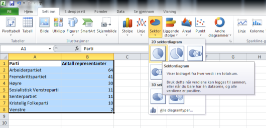 Vi bruker samme regneark som i forrige oppgave. Vi bruker Excels innebygde funksjon for å finne