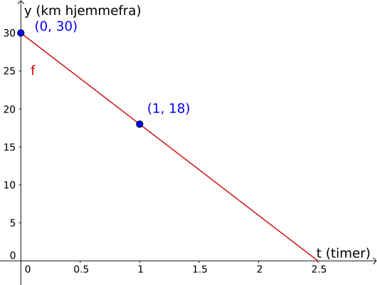 Disse funksjonene er rette linjer der a er stigningstallet og b er punktet grafen krysser y-aksen.Ligning
