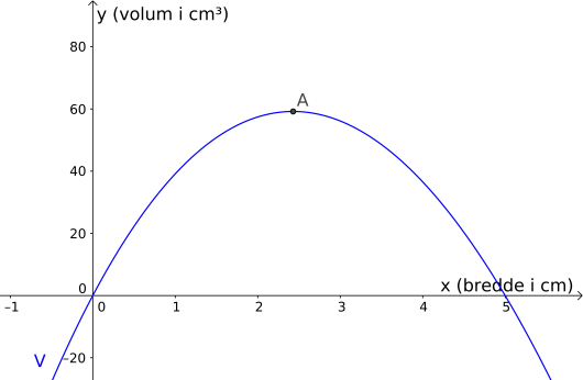 Svar: Boksen har størst volum, på , når bredden til boksen i centimeter er .