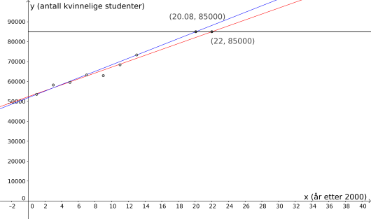 i «Skriv inn»-vinduet i GeoGebra. Da får vi . Det betyr at temperaturen i sjøen var da det hadde gått dager.