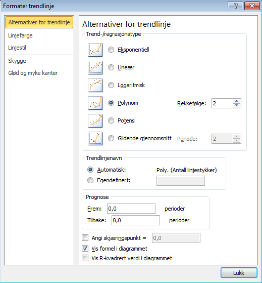Her må vi stille inn GeoGebra på desimaler for å kunne se funksjonsuttrykket i algebrafeltet. Videre må vi tilpasse